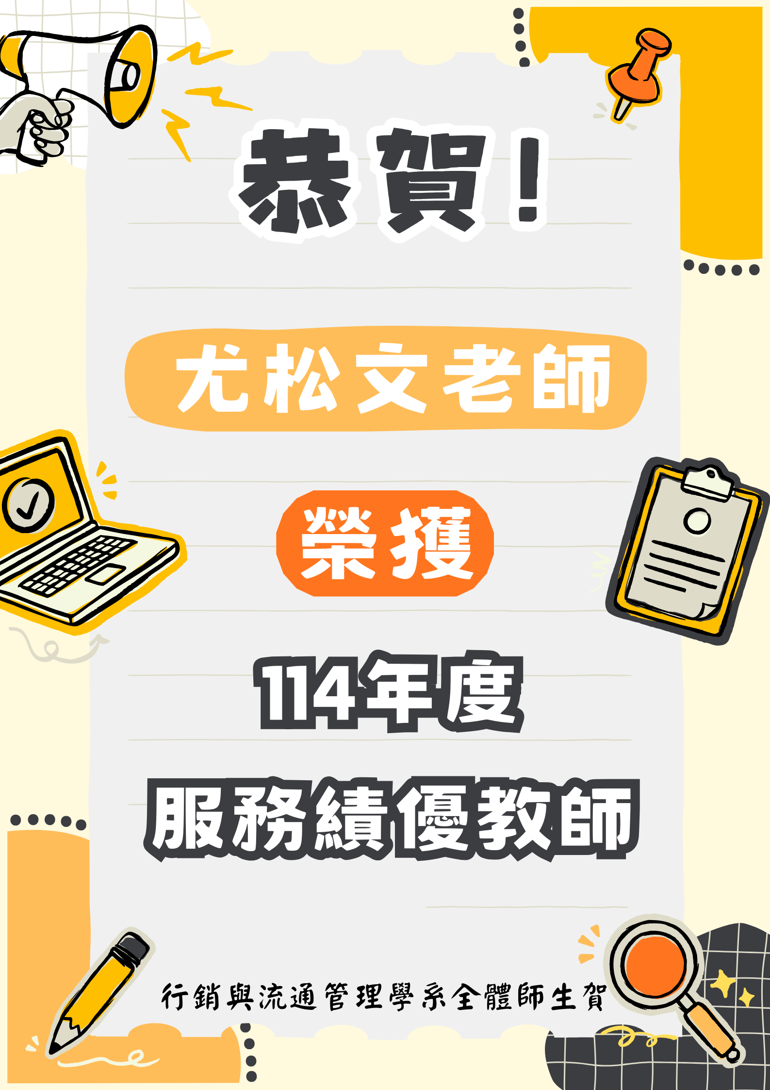 <![CDATA[【恭賀】本學系尤松文老師榮獲114年度服務績優教師]]>